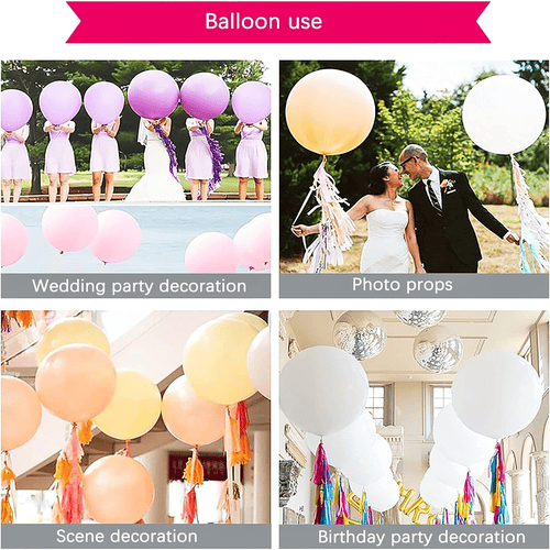 Saat menggunakan balon lateks 24 inci, orang lebih suka mengisinya dengan helium dan kemudian mengikat beberapa hiasan di bawah balon. Gayanya akan sangat elegan dan romantis. Mereka dapat dijadikan sebagai pemandangan yang bagus untuk mengambil foto. Balon ini sangat cocok untuk pernikahan, pesta pertunangan, pesta ulang tahun, pesta makan malam, dan banyak acara.