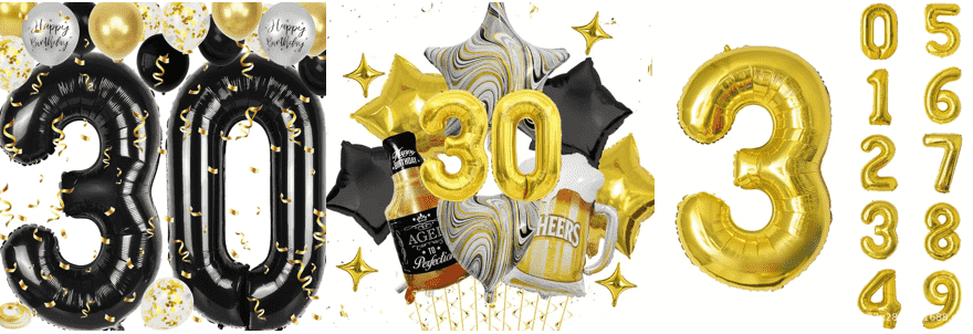 ItuLateks, foil, kertasditandai dengan kilau logam dan dapat disesuaikan dalam berbagai bentuk. Kombinasi bebas, kombinasi angka besar 3 dan 0, botol sampanye atau pola bintang, cocok untuk acara-acara khusus seperti pesta ulang tahun, perayaan hari jadi atau pernikahan. Termasuk balon emas mawar, holografik, atau foil yang dipersonalisasi dengan nama dan pesan yang disesuaikan, balon ini dapat dipadukan secara sempurna dengan berbagai tema dan skema warna serta menjadi dekorasi fokus pesta.