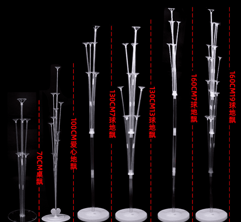 Ini terdiri dari tiga bagian: alas, tiang tegak, dan pendorong. Basisnya memiliki dua gaya, yang biasa dan basis injeksi air. Basis injeksi air memiliki stabilitas yang lebih kuat. Berat air membuat alasnya lebih berat untuk mencegah dudukannya jatuh karena pengaruh angin atau gaya luar. Ada beberapa jack yang tersebar merata di tiang tegak, yang memudahkan untuk memasukkan dudukan balon dengan ketinggian berbeda dan memasang balon dengan kuat pada pendorong, menciptakan efek pohon balon hierarki, dekorasi yang indah dan dapat menyesuaikan tata letak balon sesuka hati, lebih banyak fleksibilitas. Biasa digunakan di pusat perbelanjaan, perayaan hari raya dan acara dekorasi lainnya.