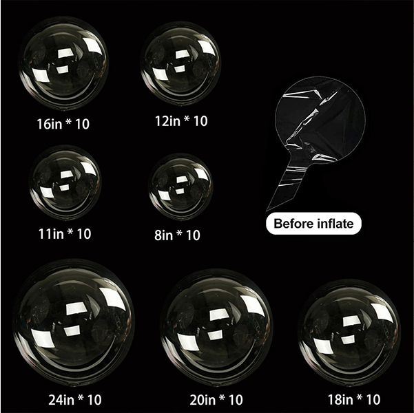Balon gelembung berwarna terbuat dari TPU, bahan yang tidak beracun, dapat digunakan kembali, dan sangat elastis. Mereka dapat meningkat dengan pompa udara manual, dan balon kristal transparan ini cocok untuk berbagai kesempatan, seperti pesta ulang tahun, baby shower, pernikahan, Natal, Halloween, pesta Tahun Baru, perayaan kelulusan, dan banyak lagi.