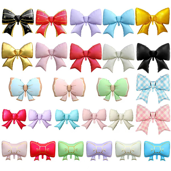Balon foil busur ini mengubah tampilan dasi kupu-kupu klasik. Beberapa memiliki ujung pita yang melengkung atau terbelah. Beberapa menunjukkan desain berongga. Gayanya terlihat segar dan istimewa. Mereka menghadirkan perasaan seperti seni. Mereka menjadi sorotan dalam pengaturan pesta mana pun.