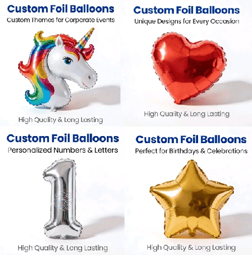 Balon foil khusus dapat disesuaikan dalam ukuran konvensional termasuk 5, 10, 18, 24, dan 36 inci. Bentuk dan ukuran khusus yang tidak beraturan juga dapat disesuaikan sesuai kebutuhan.