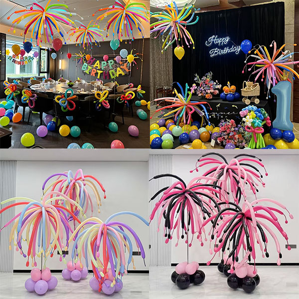 Melihat kombinasi warna. Balon pemodelan kembang api berwarna matte memiliki pasangan warna-pink klasik. Campuran hitam pink misterius dan manis bersama. Mereka memiliki sedikit kesejukan, namun menjaga kelembutan romantis. Mereka bagus untuk pesta dengan tema unik. Seperti pesta mode yang trendi, pesta bertema dewasa dan sebagainya. Ada juga set multi-warna. Mereka mengumpulkan warna -warna cerah seperti merah, oranye, kuning, hijau, cyan, biru, ungu. Ini seperti menghancurkan pelangi ke balon. Mereka penuh energi dan kehidupan. Mereka dapat membuat pesta menyenangkan segera. Mereka bagus untuk pesta ulang tahun anak -anak. Mereka bekerja untuk pertemuan keluarga yang bahagia juga. Balon pemodelan kembang api berwarna macaron memadukan warna macaron lembut. Warna-warna seperti jalinan pink-ungu, biru muda, kuning pucat. Mereka menciptakan suasana yang melamun dan manis. Mereka cocok dengan pesta yang penuh dengan pesona anak perempuan dengan sangat baik. Seperti pesta ulang tahun bertema putri, teman baik yang kumpul-kumpul. Balon pemodelan kembang api berwarna logam menggabungkan hitam dan emas. Ini menunjukkan kemewahan dan kemegahan. Emas hitam dan cerah yang tenang saling melengkapi. Mereka cocok untuk pesta bisnis kelas atas, pesta perayaan ulang tahun dan sebagainya. Mereka dapat meningkatkan gaya dan kelas pesta.