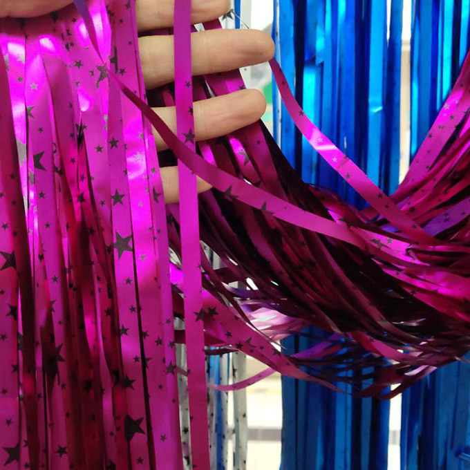 ① warna dan beragam warna, termasuk warna solid, warna laser, warna macaroon, dll., Dan beberapa tirai foil memiliki efek perubahan yang glitter dan bertahap, dan juga dapat dirancang ke dalam berbagai bentuk, seperti lima bintang, hati persik, dll., Yang dapat menambah sorotan pada adegan dan menciptakan suasana yang unik.