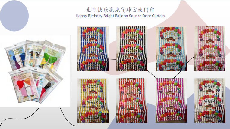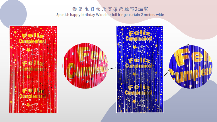 seperti tirai foil dengan tema warna bendera nasional, yang dapat digunakan untuk kegiatan patriotik seperti Hari Nasional; Ada juga tirai foil hitam dan putih dengan tema balap, yang cocok untuk pesta tema balap, dll.