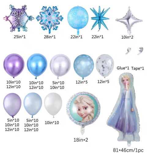 Balon foil adalah bagian utama dari set lengkungan balon bertema Frozen. Mereka terutama mencakup balon foil potret kepala Putri, balon foil manusia salju. Balon foil angka dan balon foil huruf juga dapat ditambahkan untuk menciptakan suasana pesta yang lebih tinggi seolah-olah Anda menginginkan dekorasi bergaya pesta ulang tahun.