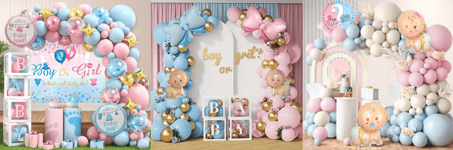 Kami juga menyediakan balon lateks cetak berukuran 12 inci, sebagian besar didesain dengan warna biru dan merah muda, yang dapat dipadukan dengan karangan bunga balon, hiasan dinding, atau rantai balon kecil untuk mengubah ruang tamu dan kamar tidur menjadi ruang eksklusif untuk pengungkapan gender dan membiarkan nuansa ritual meresap ke dalam setiap detail.