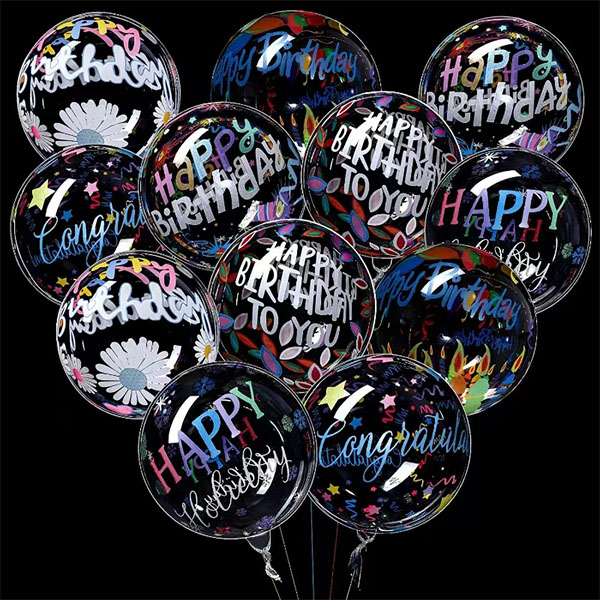 Menempatkan confetti di dalam balon selamat ulang tahun yang transparan Bobo membuat balon terlihat lebih penuh gerakan dan lebih kaya lapisan. Confetti bergerak saat balon bergerak. Ini menunjukkan efek visual yang mengkilap. Adalah baik untuk membuat suasana pesta yang cerah dan bahagia. Balon dapat menggunakan confetti logam warna tunggal atau banyak warna dicampur. Keduanya membuat balon terlihat lebih modern dan lebih halus. Ini bisa menjadi titik kunci untuk dinding latar belakang atau lengkungan.