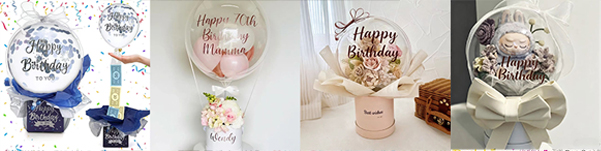 Satu atau lebih mawar dapat dimasukkan ke dalam balon Bobo. Ini adalah cara klasik untuk menunjukkan perasaan romantis. Balon yang jelas seperti penutup. Itu membuat bunganya terlihat lebih cerah dan lebih indah. Mawar merah berarti gairah. Mawar merah muda berarti lembut dan lembut. Tampilannya lebih baik dengan lampu LED. Ini adalah hadiah yang bagus untuk seorang gadis di hari ulang tahunnya.