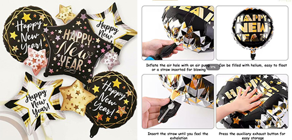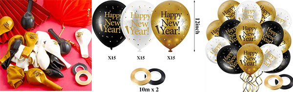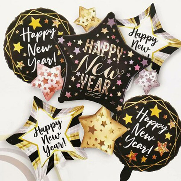 Balon bertema Tahun Baru adalah bagian penting dari dekorasi liburan. Balon-balon berwarna cerah ini, dalam warna hitam dan emas, menciptakan sentuhan perayaan yang unik, menghadirkan kegembiraan dan gaya pada suasana Tahun Baru. Teksturnya yang tahan lama tahan terhadap deflasi, sehingga membuatnya tetap kenyang untuk waktu yang lama. Mereka dapat dipompa denganhelium atau udara, mempertahankan tampilan tiga dimensi penuh. Mereka sempurna untuk dekorasi dalam dan luar ruangan.