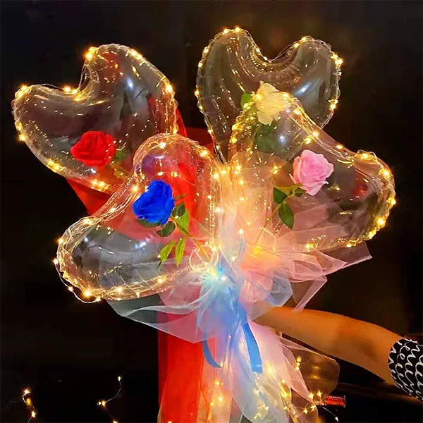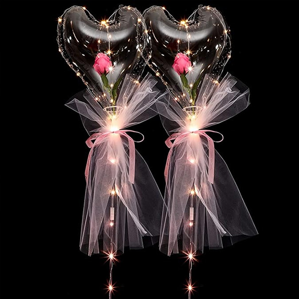 Set mawar balon bobo berbentuk hati yang kami produksi ini berisi balon gelombang berbentuk hati, bunga mawar tiruan, lampu led, tiang lampu, pita dan kain kasa. Set mawar balon bobo berbentuk hati ini memiliki beragam mawar buatan untuk dipilih. Kami telah mencocokkannya dengan pita dan benang dengan warna yang sesuai. Ukuran balon bobo berbentuk hati ini adalah 7-8cm sehingga memungkinkan Anda mengisi bunga tanpa menggunakan alat pengembang balon atau mesin pengisi balon. Balon plastik transparan ini sangat cocok untuk berbagai kesempatan, seperti pernikahan, pertunangan, perayaan wisuda, pesta ulang tahun, dan berbagai acara, yang dapat dengan mudah menambah sentuhan elegan pada aktivitas Anda.