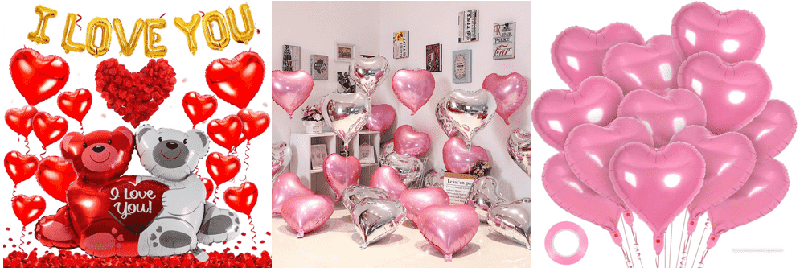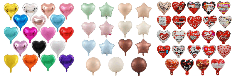 Setelan balon foil difokuskan pada pencocokan bahan foil, gaya yang berbedaNiun®balon foil berbentuk hati dipadukan dengan lainnya balon foil(seperti bintang, bulan, huruf, dll.) untuk menciptakan efek dekoratif dengan tingkat yang kaya dan gaya terpadu, yang cocok untuk suasana pesta yang mengutamakan kehalusan. Layanan khusus balon foil berbentuk hati