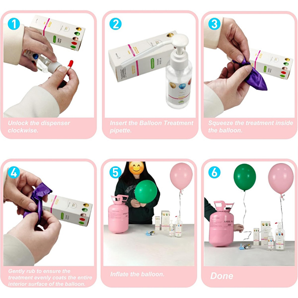 3. Gunakan formula yang ditingkatkan untuk memastikan waktu pembentukan film lem di dalam balon lebih pendek. Itu dirancang khusus untuk memperpanjang waktu mengambang balon helium di lingkungan yang hangat dan lembab.