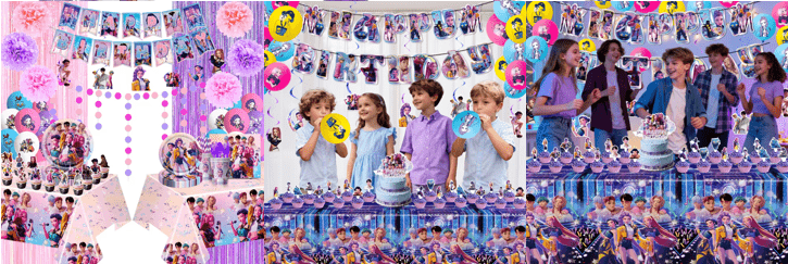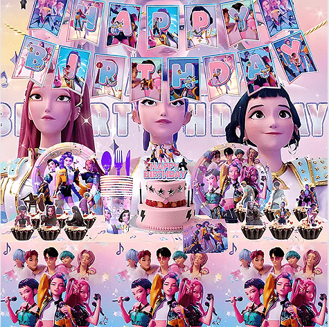 Pesta Ulang Tahun: Baik anak-anak maupun orang dewasa, mereka dapat menciptakan suasana bahagia dengan set dekorasi Pesta Pemburu Setan K-POP, kain latar belakang, plug-in kue, dan dekorasi lainnya.