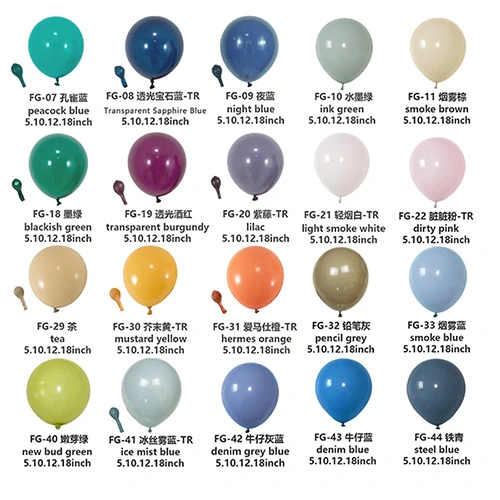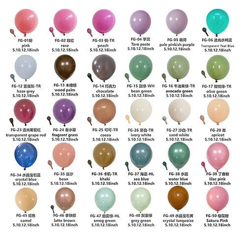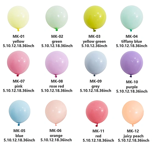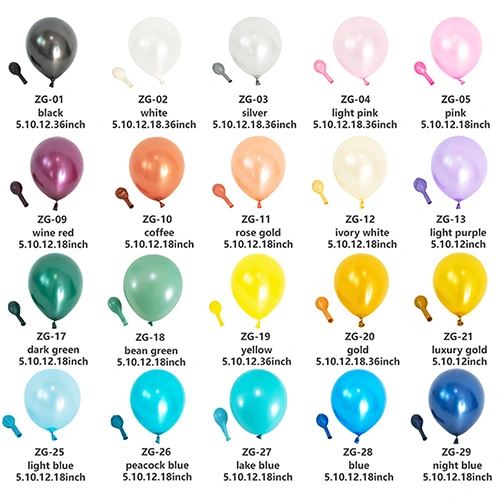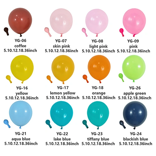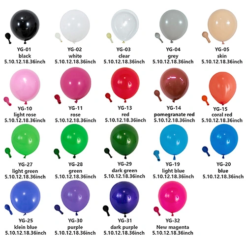 Balon lateks banyak digunakan sebagai barang dekoratif dan hiburan. Balon ini sangat populer di berbagai kesempatan karena warna dan cara penggunaannya yang berbeda. Dari merah matte, kuning, biru dan hijau hingga merah muda retro dan ungu, lalu hingga warna metalik seperti emas dan mawar, balon berkualitas tinggi dapat menciptakan efek visual yang mengejutkan dan memenuhi kebutuhan berbagai skenario.