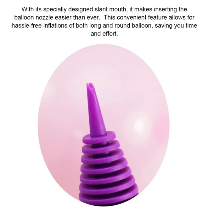 Untuk pompa tangan pemodelan balon kami, Borun Balloon Factory menggunakan desain nozzle miring agar lebih mudah dimasukkan. Ini kompatibel dengan sebagian besar balon lateks dan foil. Pompa balon menarik udara dari atas dan bawah, menggembungkan balon dua kali lebih cepat, menghemat waktu dan usaha. Borun iniPompa tangan balon merek niunadalah alternatif penghematan napas untuk menggembungkan balon melalui mulut.