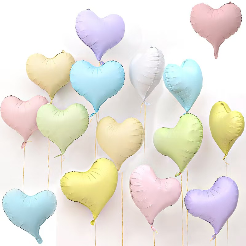 Balon foil matte dengan tekstur buram halus, saturasi rendah warna bermutu tinggi, mematahkan perasaan publisitas permukaan cerah, baik kualitas bahan aluminium foil retensi gas yang kuat, bentuk tiga dimensi, tidak mudah pecah keunggulan praktis, kombinasi set balon yang fleksibel, dengan balon lateks dan produk aksesori lainnya.