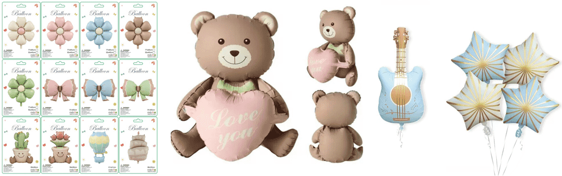 MOQ gaya stok balon foil buram matte adalah 10 set, gaya khusus adalah 50 set.