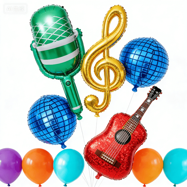 Balon foil musikTersedia dalam berbagai jenis, seperti balon foil alat musik (balon foil gitar, balon foil mikrofon) dan balon foil not musik. Ketika musik pop menjadi semakin populer, mereka kini memiliki pasar yang besar. Misalnya saja film: Kpop Demon Hunters yang kini sedang viral di Amerika Serikat. Banyak remaja Amerika berharap untuk memasukkan elemen musik yang relevan ke dalam pesta ulang tahun mereka untuk memberi penghormatan kepada film ini. Untuk memenuhi semua kebutuhan pelanggan, kami telah menyiapkan warna berbeda untuk mereka: untuk anak laki-laki Anda dapat menggunakan biru tua, biru, hitam dan coklat; untuk anak perempuan bisa menggunakan warna pink, pink muda, ungu dan lain sebagainya. Selalu ada warna yang cocok menunggu Anda. Mereka memiliki fleksibilitas yang tinggi dan Anda dapat menggabungkannya sesuka Anda. Seperti menambahkan beberapa balon lateks untuk membuat set karangan bunga balon foil musik. Atau gunakan beberapa balon untuk membuat set kecil balon foil musik.