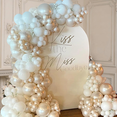 Kit lengkungan balon mandi pengantin mutiara berisi balon lateks dan aksesori terkait. Ada dua jenis balon dua lapis berwarna putih mutiara, serta tempelan mutiara, yang dirancang untuk membuat dekorasi balon Anda lebih mewah. Menambahkanbalon mutiarauntuk menciptakan latar belakang yang indah untuk pesta ikrar yang akan mengesankan para tamu. Kitabalon lateksterbuat dari 100% karet alam. Tekstur balonnya kental, tidak mudah pecah, warnanya murni. Lateks berkualitas tinggi memungkinkan balon meregang dengan baik saat dipompa. Penambahan helium dapat membuat balon melayang, tidak perlu khawatir balon bocor, dan umur pemakaiannya cukup lama.