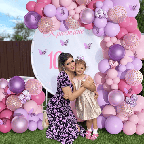 Set karangan bunga balon merah muda ungu yang dapat disesuaikan sangat mudah di NiuN®, tidak peduli Anda ingin menyesuaikan balon atau paket.