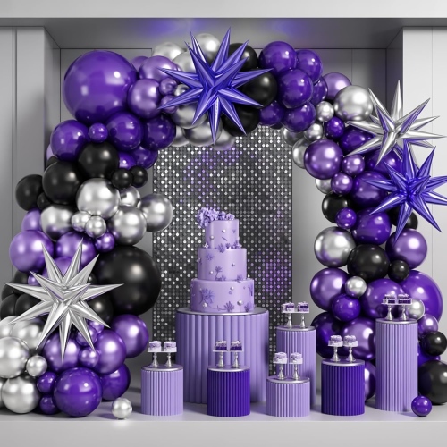 Perlengkapan karangan bunga balon ungu dan hitam berkualitas tinggi memungkinkan Anda memadupadankan balon hitam dan ungu. Mereka dapat dikombinasikan dengan balon hitam dan ungu dengan balon perak atau balon foil perak untuk menonjolkan perlengkapan lengkungan karangan bunga balon. Ini sangat ideal untuk pesta wisuda, upacara orang dewasa dan perayaan tonggak sejarah lainnya, mewujudkan rasa ritual saat seseorang mengucapkan selamat tinggal pada masa muda dan melangkah menuju kedewasaan. Mereka juga dapat memadukan balon hitam dan ungu dengan balon emas atau balon foil emas. Ini ideal untuk acara-acara seperti ulang tahun perusahaan dan pembukaan toko baru, karena memancarkan profesionalisme dan kecanggihan sekaligus menyampaikan citra merek kelas atas dan bereputasi baik. Bisa juga dipadukan dengan balon biru untuk menciptakan tampilan futuristik. Perlengkapan balon ini sangat cocok untuk pesta bertema olahraga elektronik, trendi, dan fiksi ilmiah, menawarkan dampak visual yang mencolok.