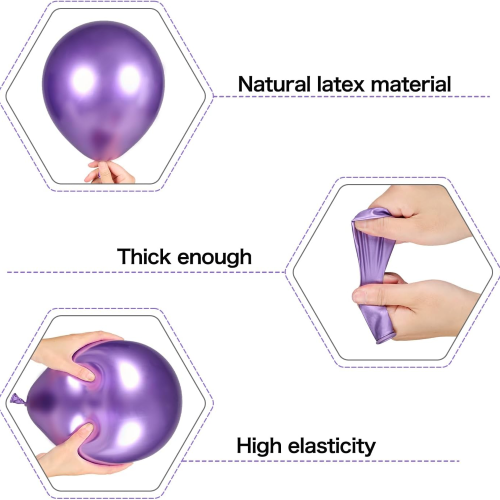 Jumlah dan berat perlengkapan karangan bunga balon ungu dan hitam kami lebih banyak dibandingkan merek lain. Setiap perlengkapan lengkungan karangan bunga balon kami berisi setidaknya 100 balon. Setiap ukuran balon yang kami tawarkan menggunakan standar berat gram industri. Misalnya, berat gram balon berukuran 12 inci adalah 2,8 gram. Kami juga dapat menyesuaikan berat gram balon jika Anda memiliki persyaratan khusus. Seperti yang dapat Anda lihat dari gambar di bawah, satu set balon kami saja sudah cukup untuk menciptakan suasana pesta yang bergaya dan atmosferik dengan mudah.