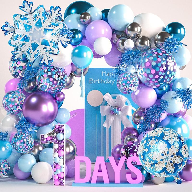 Jika Anda ingin menciptakan sorotan dekoratif yang menarik untuk pesta Anda, cobalah balon foil kepingan salju kami dengan perlengkapan lengkungan karangan bunga balon. Dekorasi lengkungan balon biru keunguan ini sangat cocok untuk pesta ulang tahun tema beku, pesta tema Aisha, pesta tema es dan salju, pesta wonderland musim dingin, pesta tema musim dingin, pesta putri, pesta bayi, dan pesta pengantin. Baik untuk pernikahan, ulang tahun, wisuda, pertunangan, hari jadi, pesta pengungkapan gender, pesta keluarga di dalam dan luar ruangan, paket karangan bunga balon dengan balon aluminium foil kepingan salju ini dapat memenuhi kebutuhan Anda. Dekorasi pesta kami akan membantu Anda mencerahkan setiap momen pesta Anda.