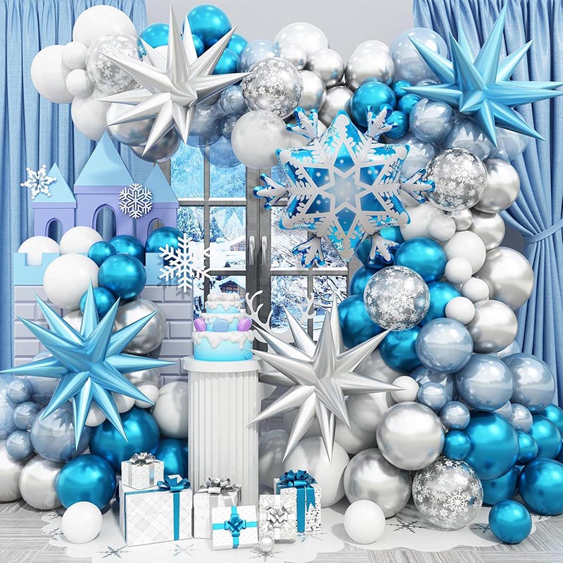 Balon foil kepingan salju terbaru dari pabrik balon NiuN® adalah dekorasi pesta yang bagus. Balon foil berbentuk kepingan salju ini didesain dengan warna biru dan putih, dengan bentuk bulat dan kepingan salju, cocok untuk Natal, pesta bertema wonderland musim dingin, ulang tahun, pembaptisan bayi, dan acara pesta lainnya. Balon kepingan salju mylar ukuran besar ini dirancang menjadi bentuk kepingan salju beku yang indah.