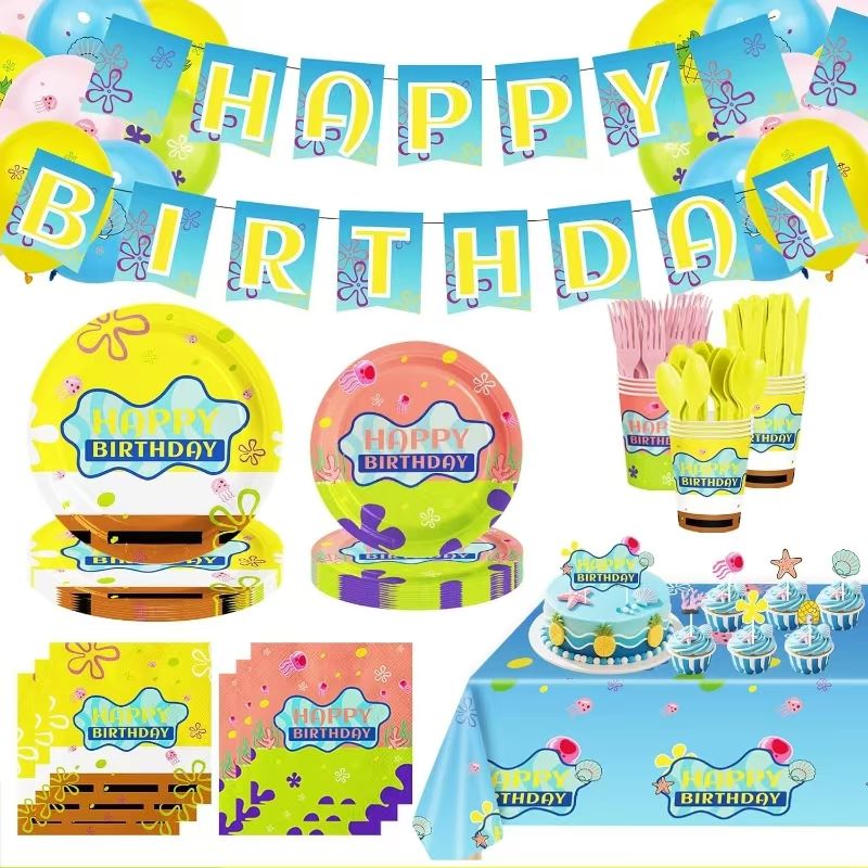 Untuk perlengkapan pesta anak-anak, set peralatan makan SpongeBob adalah pilihan yang menyenangkan dan berguna. Ini memiliki karakter terkenal seperti SpongeBob dan Patrick sebagai desain utama. Set dilengkapi dengan piring, cangkir kertas, serbet, dan peralatan makan. Piring-piring itu memperlihatkan SpongeBob dengan senyum lebar dan Patrick dengan wajah lucu. Desainnya menambahkan ubur-ubur, rumput laut, dan cangkang untuk menghadirkan gaya laut. Warnanya cerah dan kaya akan lapisan. Gelas kertas dan serbet mengikuti tema yang sama. Seluruh meja tampak penuh dengan kesenangan laut. Peralatan makan ini menggunakan bahan yang aman dan ramah lingkungan. Itu mempertahankan gaya yang lucu dan juga berguna. Cocok untuk pesta ulang tahun, acara bertema, atau makan keluarga. Set ini menghadirkan “Pesta Bawahan Bikini” yang menyenangkan untuk anak-anak dan memberi orang tua pilihan pesta yang mudah dan berkualitas tinggi.