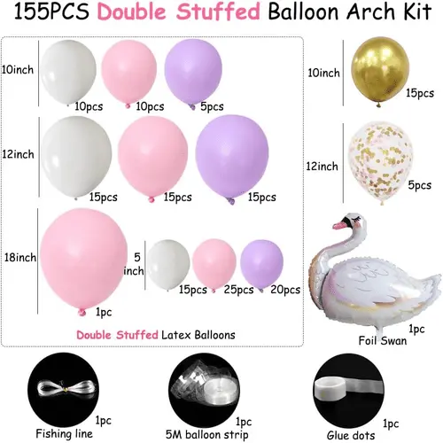 Lengkungan balon angsa adalah salah satu produk populer kami. Ini terdiri dari kamibalon latex kualitas terbaikdan balon foil yang tahan lama. Gayanya romantis dan fantastis. Banyak pelanggan kami memilih untuk memesan kit ini, dan ini sangat membantu bisnis mereka. Lengkungan balon angsa cocok untuk berbagai kesempatan, seperti pesta ulang tahun, pesta pernikahan, baby shower, dan sebagainya.