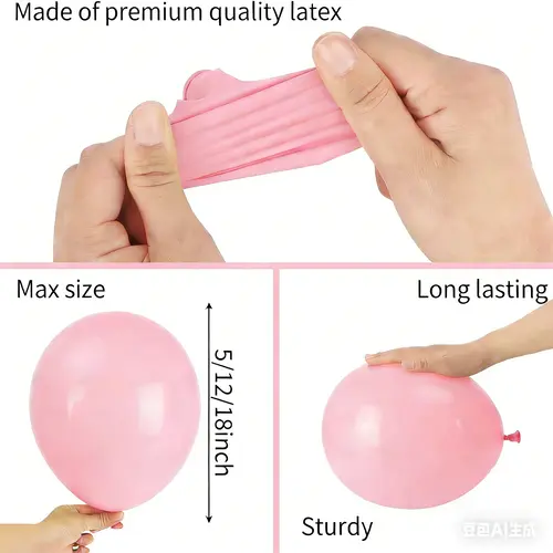 Karena bahan baku yang kami gunakan dan bahan pencetakan yang aman, balon-balon tersebut benar-benar ramah lingkungan dan tidak berbahaya bagi anak-anak dan orang dewasa. Warnanya kebanyakan warna terang, seperti pink, ungu, putih, transparan. Balon emas metalik juga ditambahkan dan membuat lengkungannya lebih menarik.