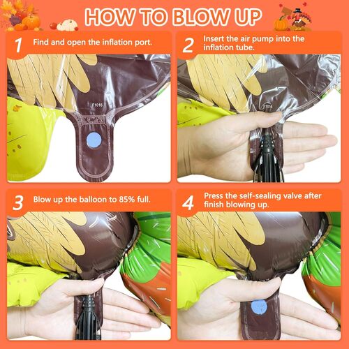Balon foil Thanksgiving akan sangat mudah untuk ditiup dan disegel. Anda dapat menggunakan pompa manual atau pompa listrik untuk mengembang, lalu menutupnya dengan lem berperekat yang ada di nosel setiap balon. Setelah disegel, balon akan menjadi kuat.