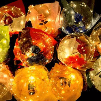 Balon Rose Bobo merupakan produk kreatif yang memadukan bunga mawar dengan balon bobo. Bunga mawar yang diolah seperti diremas mengembang dan berisi, dimasukkan ke dalam balon bobo transparan, kemudian balon bobo ditiup. Setelah itu, tiang bunga dan mulut bola akan dipasang dengan pita perekat, dan dipasang dudukan bola dengan garis tipis. Garis lampu juga memiliki berbagai mode cahaya. Selain itu, bola tersebut akan dihias dengan balon panjang, benang peri, pita, dll agar terlihat lebih indah dan halus. Terutama digunakan untuk dekorasi Hari Valentine, ulang tahun, pernikahan dan acara romantis lainnya, juga dapat diberikan sebagai hadiah.